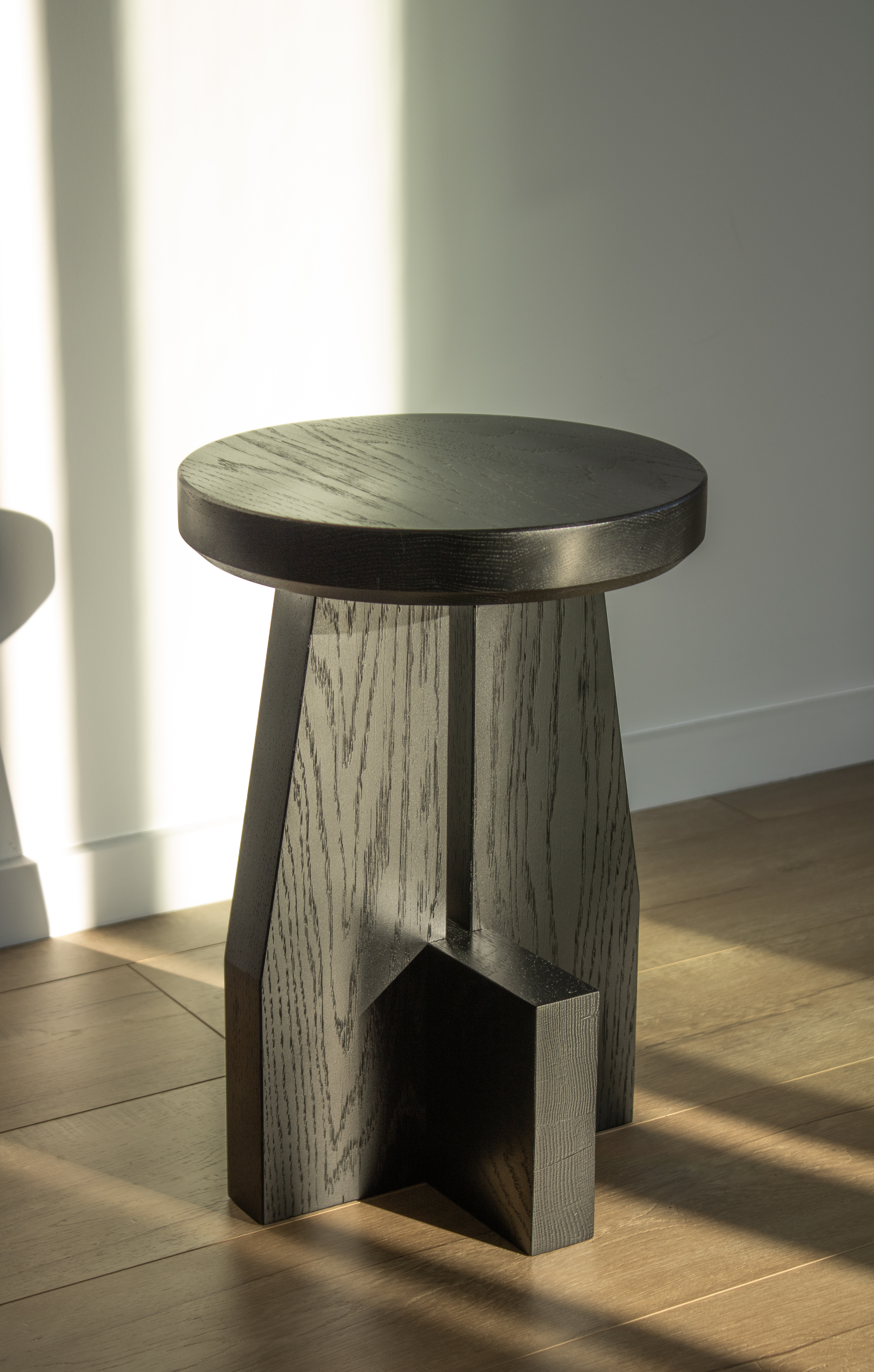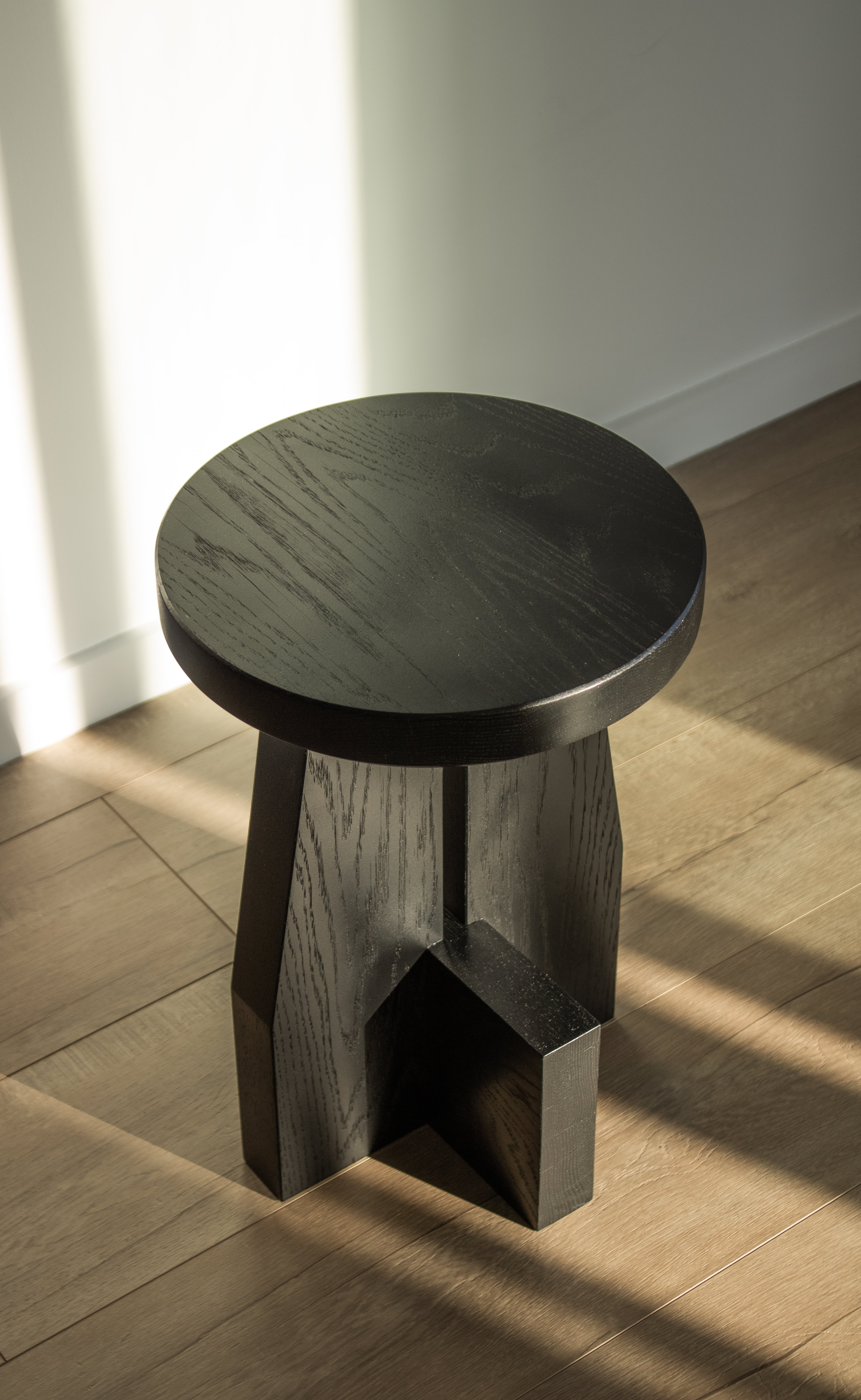 Introducing Rook Stool, a versatile and modern design piece suitable for residential and commercial interior spaces. Made from ‘American White Oak’ stained in black, Rook is an object made to last. By using unique woodworking techniques, the seat is supported by a plane, making its main characteristic and appeal.